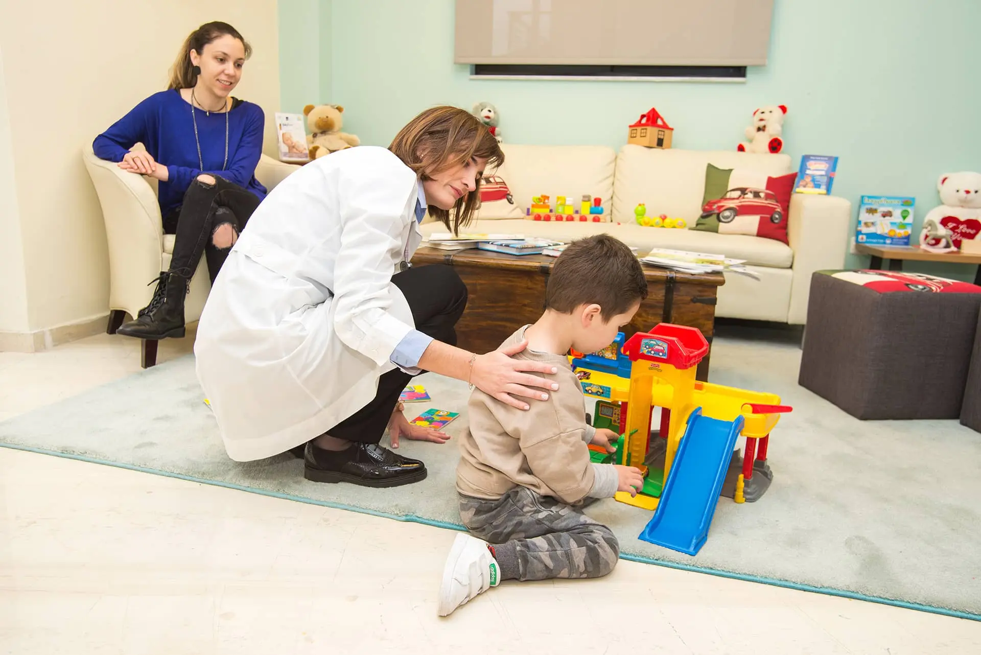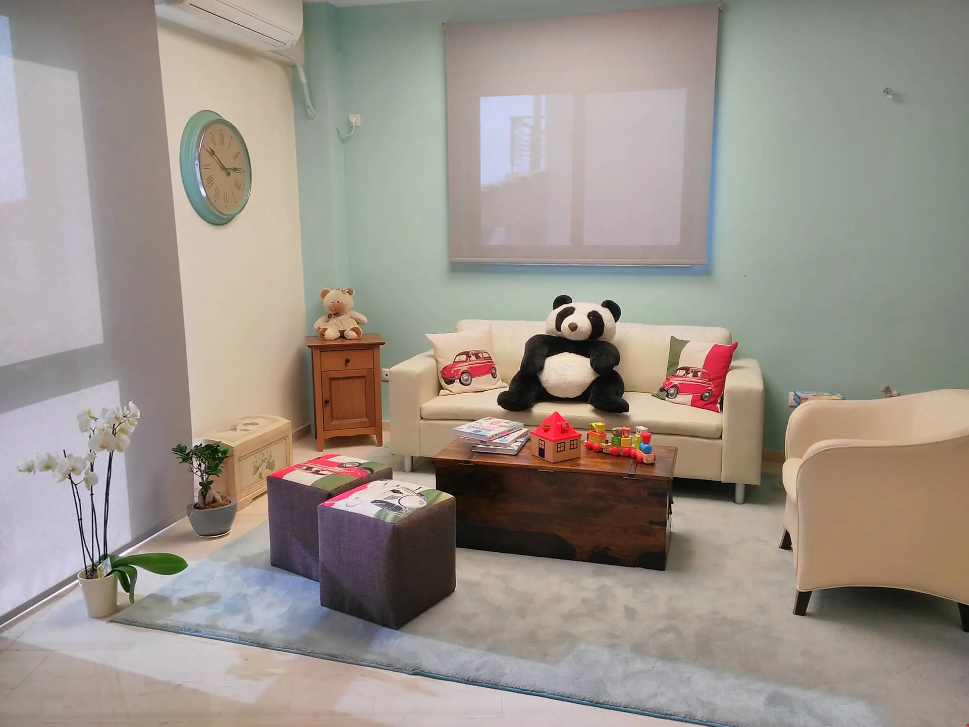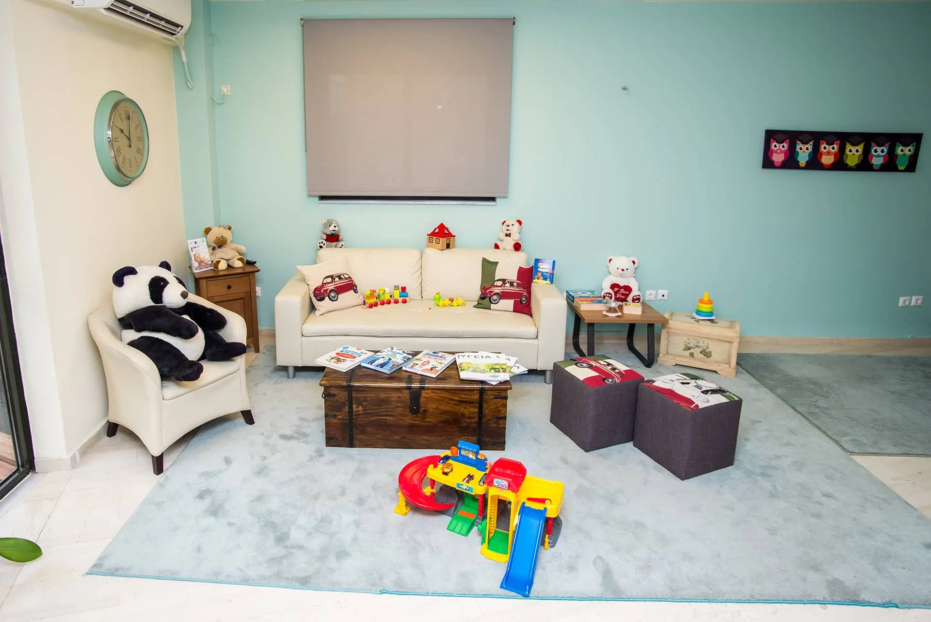 Μια ήσυχη, καθαρή και λειτουργική ατμόσφαιρα για να προσφέρει στα παιδιά το παιχνίδι και την ξενοιασιά παρότι περιμένουν το γιατρό τους.